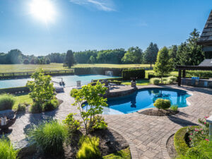 Natural stone options like slate, granite, and bluestone bring a touch of nature and luxury. These stones are incredibly durable and can withstand Michigan’s seasonal weather changes without losing their charm. The varied textures and colors let you customize your pool deck’s look—from rustic to modern—and create a beautiful contrast with the water’s blue hues.